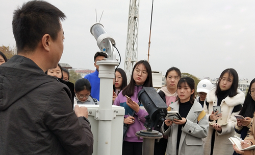 本次实习以班级为单位,分三批进行,主要内容是校外气象观测场观测仪器及校内气象数据的计算处理。校外室内阶段,气象站工作人员向同学们详细介绍了各项气象数据的收集、处理方法以及部分气象测量仪器的观测原理和观测注意事项,如酸雨监测系统,大气颗粒物pm2.5、pm10检测仪等;室外阶段,气象站工作人员向同学们近距离展示了观测场内常规气象观测仪器,如能见度测量仪、闪电定位仪、固态降水传感器、日照计、雨量筒、地温场、风向标等观测设备,并详细介绍了仪器的工作原理及使用方法。校内阶段,专业指导老师详细讲解了气象数据的处理分析方法,并向学生们介绍了当今全球变暖等科研前沿知识。实习过程中,气象站工作人员和指导教师提前筹备、耐心讲解,同学们热情高涨,专心听讲、细致观察、认真记录、主动提问,收获满满。