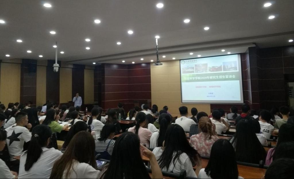 宣讲会上,闫军辉博士从信阳师范威尼斯官网、威尼斯9499登录入口介绍、地理科学学院硕士研究生招生与培养、以及信阳学院学子报考我校研究生优势等四个方面,向与会学生详细讲解了威尼斯9499登录入口的师资队伍、实验室与重点学科建设、科研平台、科研成果以及2020年度硕士研究生招生情况。并就学生关心的招生类型与规模、考试科目与教材等问题,与参会的学生进行了交流,耐心的回答了同学提出的问题。闫军辉博士指出,学院2020年度拟招收研究生24人,招生规模较往年将有所增加;地理学院师资力量雄厚,导师队伍结构合理,仪器设备齐全,科研氛围浓厚,研究生培养质量较高,研究生就业情况喜人。另外,学院2019年新遴选一批985、中科院毕业的优秀博士为硕导,研究生作为导师的“开门大弟子”将会得到学院和导师更多的关注和更全面的培养。接着,张兴国副教授就地图学与地理信息系统专业招生状况、培养方式、就业状况为学生们做进一步介绍。宣讲会受到了信阳学院老师和同学们的热烈欢迎,在交流互动环节,闫军辉博士和张兴国副教授不仅回答了师生有关研究生奖助学金体系、就业情况等问题,还结合自身考研和考博经历,对考研四大科目的复习方法和答题技巧等进行了详细的解答。宣讲会形式活泼、气氛热烈,现场掌声阵阵,受到学生的一致好评。