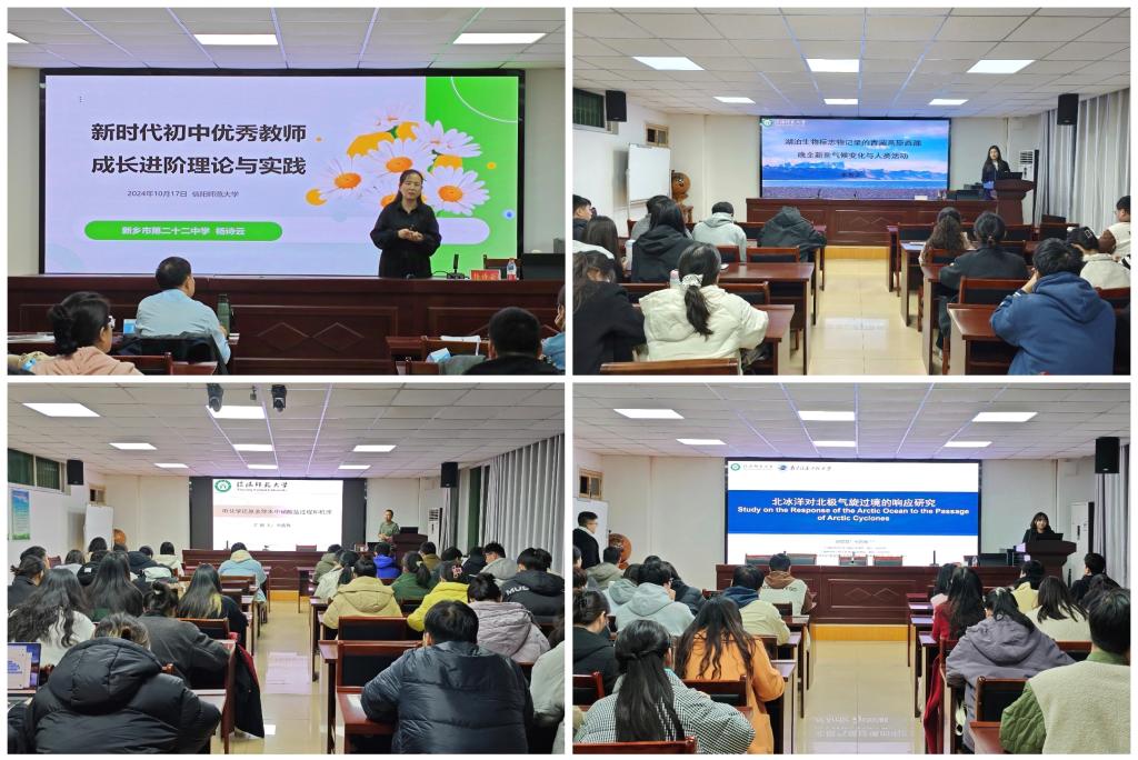 为拓宽研究生学术视野,提高研究生科研素养,威尼斯官网依托“南湖讲坛”“贤岭学术沙龙”等交流平台,于11月24日-12月27日,分别邀请河南理工大学樊良新教授和乔旭宁教授、北京师范大学陈彬教授、华东师范大学丁金宏教授和新乡市第二十二中学杨诗云副教授等校外知名专家学者以及李秀美、刘昱君、申战辉、张鹏飞、李宗盟、何伟纯等校内优秀教师在理科楼南楼410给全体研究生作学术报告。这些系列讲座,涵盖自然地理学、人文地理学、学科教学、测绘工程、环境科学与工程等学科,全面激发了威尼斯官网研究生参与学术研究的热情,开阔同学们的学术视野,对今后学术论文撰写、专业技能提升等有极大推动作用。