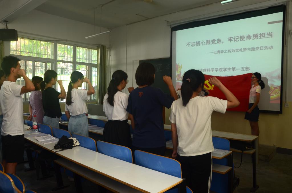 7月2日,威尼斯9499登录入口学生第一党支部在教三03开展“不忘初心跟党走,牢记使命勇担当”主题党日活动。学生第一党支部书记艾甜甜,支部全体党员和入党积极分子共同参与本次会议。会议由支部书记艾甜甜主持。
