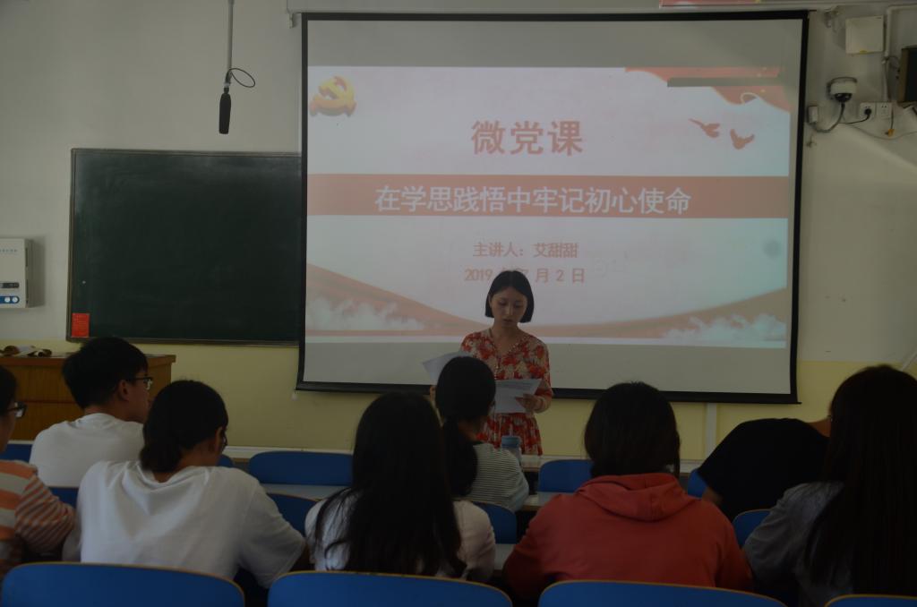 7月2日,威尼斯9499登录入口社团党支部书记艾甜甜同志于教三07为社团党支部讲党课,主题为:在学思践悟中牢记初心使命。社团党支部全体成员参加了此次党课。