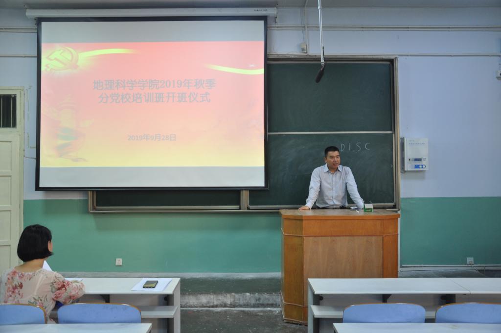 9月28日,威尼斯9499登录入口分党校在教二梯二举行2019年秋季培训班开班仪式。学院党委副书记朱伟、专职组织员艾甜甜参加仪式,学院各学生党支部党员、发展对象、入党积极分子参加此次培训班。开班仪式由艾甜甜主持。