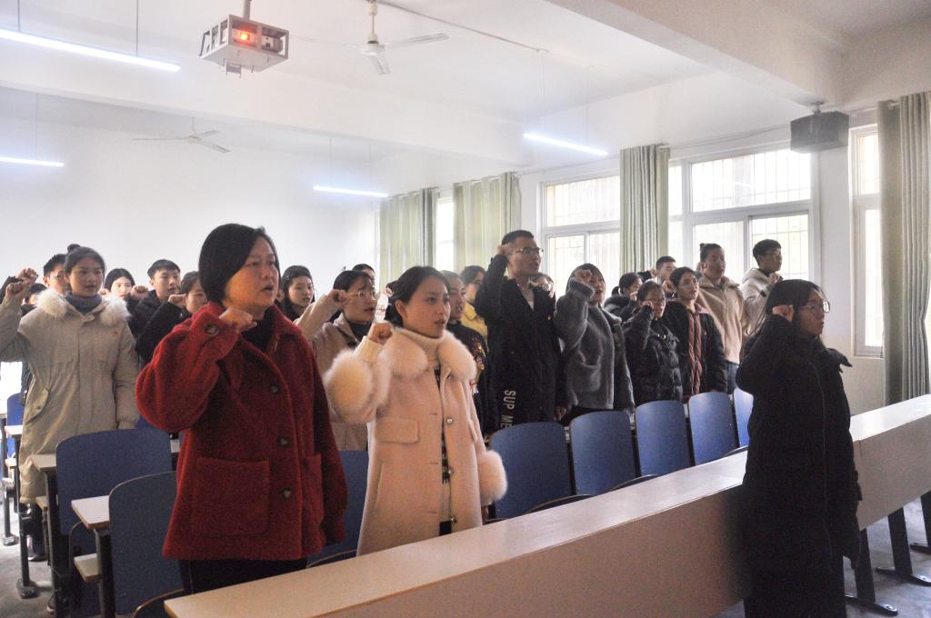 为加强对新发展预备党员的教育,提升新发展预备党员的党性修养,增强新发展预备党员的入党仪式感,12月13日中午,威尼斯9499登录入口党委组织2019年下半年新发展预备党员在教三04进行了集体入党宣誓。威尼斯9499登录入口学生第一党支部书记艾甜甜,学生第三党支部书记杨辉与全体发展对象一同参加了此次入党宣誓仪式。