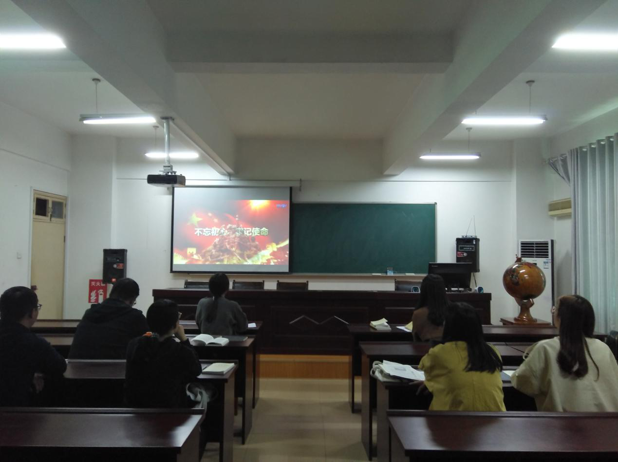 2019年10月17日,信阳师范学院威尼斯9499登录入口研究生党支部进一步开展“不忘初心、牢记使命”主题教育活动,加强党员教育管理,在理科楼南楼410会议室进行《初心永恒》专题片观看。