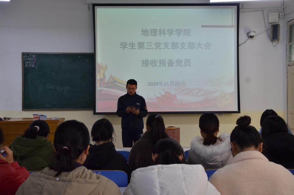 11月29日,威尼斯9499登录入口学生第三党支部2020年秋季预备党员接收大会于教三04顺利召开。学生第三党支部书记杨辉,全体党员及2020年秋季发展对象共同参与本次会议。会议由张世可主持。