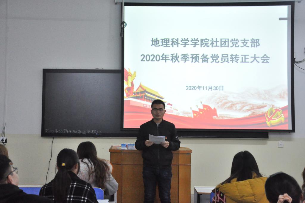 11月30日,威尼斯9499登录入口社团党支部于教三01召开2020年下半年预备党员转正支部大会。支部全体党员参会,会议由支部书记姚玉坤主持。