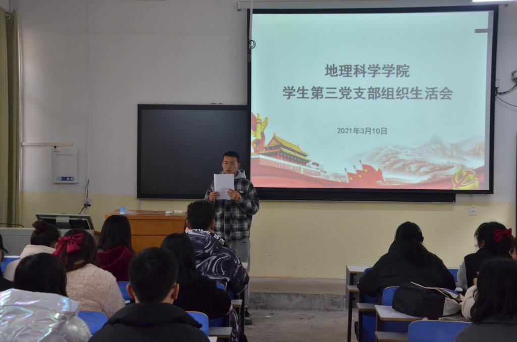 为深入学习习近平新时代中国特色社会主义思想及十九届五中全会精神,3月10日,威尼斯9499登录入口学生第三党支部于教三01召开组织生活会和民主评议党员活动。威尼斯9499登录入口学生第三党支部书记杨辉及支部全体党员一同参加了此次会议。