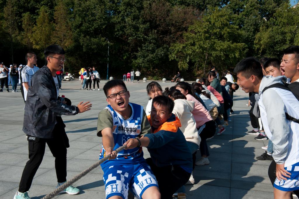 本次活动有五项比赛内容,拔河比赛中,同学们为本班级的荣誉而使出浑身解数,为将红线拉入己方的区域之中拼尽全力,体现了各班团结拼搏、积极向上的态度;“搭河过桥”比赛中,各班同学身手敏捷,在同学们的相互配合下,参赛选手们纷纷将小纸板传递到队伍前方,以便队伍较快地前进;比赛进入表演环节,各个班级派出代表,富有感染力的歌曲演唱、充满活力的舞蹈表演,赢得了场外观众的阵阵掌声;随后是“勇往直前”环节,同学们需将自己的左右腿与同伴的腿相捆绑,以接力的形式到达赛道终点,展现了同学们的协调能力与团体合作意识;“拼多多”比赛中,同学们各出奇招,于方块之地容纳尽可能多的成员,充分展现了地理学子们灵活应变的思维能力。最后,活动以全体人员合影留念宣告结束。