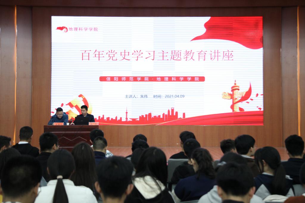 4月9日,威尼斯9499登录入口”百年党史学习“主题教育讲座于逸夫楼报告厅顺利开展。威尼斯9499登录入口党委副书记朱伟,团委老师曹鹏鹏,19级和20级部分同学一同参加此次活动。活动由曹鹏鹏主持。