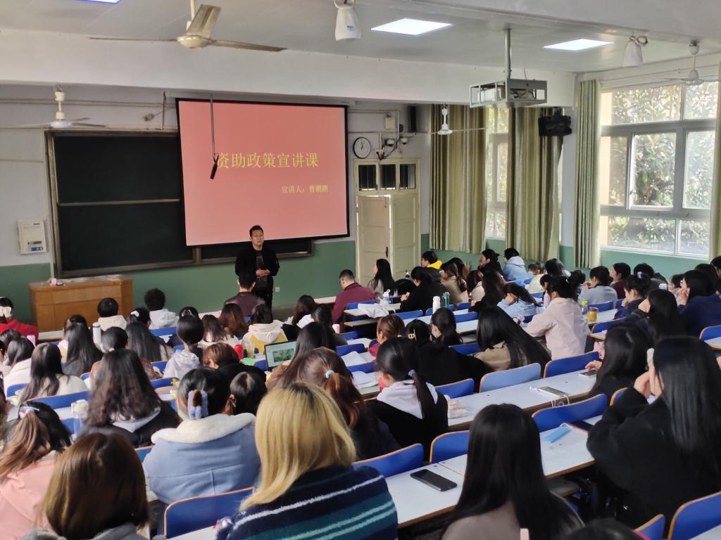 宣讲会上,曹鹏鹏对资助政策进行了详细而专业的解读,着重强调了建档立卡家庭的资助政策,希望能够切实解除家庭经济困难学生的后顾之忧。他围绕资助政策体系中的各项内容作了相关的解读,让同学们对“奖、助、贷”等国家现有资助政策有进一步了解。详细讲解了“资助对象”、“资助标准”、“资助人数”以及“资助条件的评定细则”,以确保同学们能够对资助政策有一个全面的认识。同时希望同学们合理使用奖助学金,并且希望大家能以正确的态度对待奖助学金的评选,要学会感恩,以积极向上、自强感恩的心态面对生活,报效祖国和社会。