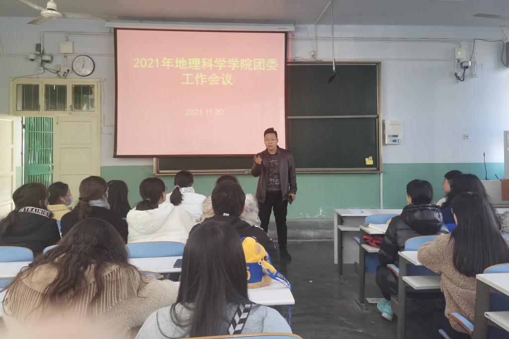 会议伊始,曹鹏鹏针对18级应届毕业生转接团关系的工作作了详细安排与部署,他建议毕业生提前将团关系转接至工作单位或户籍所在地,同时完成对大学期间参加的所有社会实践包括“三下乡”、“返家乡”等志愿服务活动的整理,以保证后续工作的顺利进行。接着,曹鹏鹏讲解有关全国志愿服务信息系统的具体工作安排,要求20、21级团支书于下午五点之前完成全员志愿者注册并做好相关志愿信息统计,积极推进志愿服务活动的有效进行。最后, 曹鹏鹏提醒大家,临近期末,要继续做好共青团的日常工作,希望全体团学干部做好表率,继续发扬为师生服务精神,做好老师和学生间的桥梁作用,配合相关部门做好学院常规管理工作。