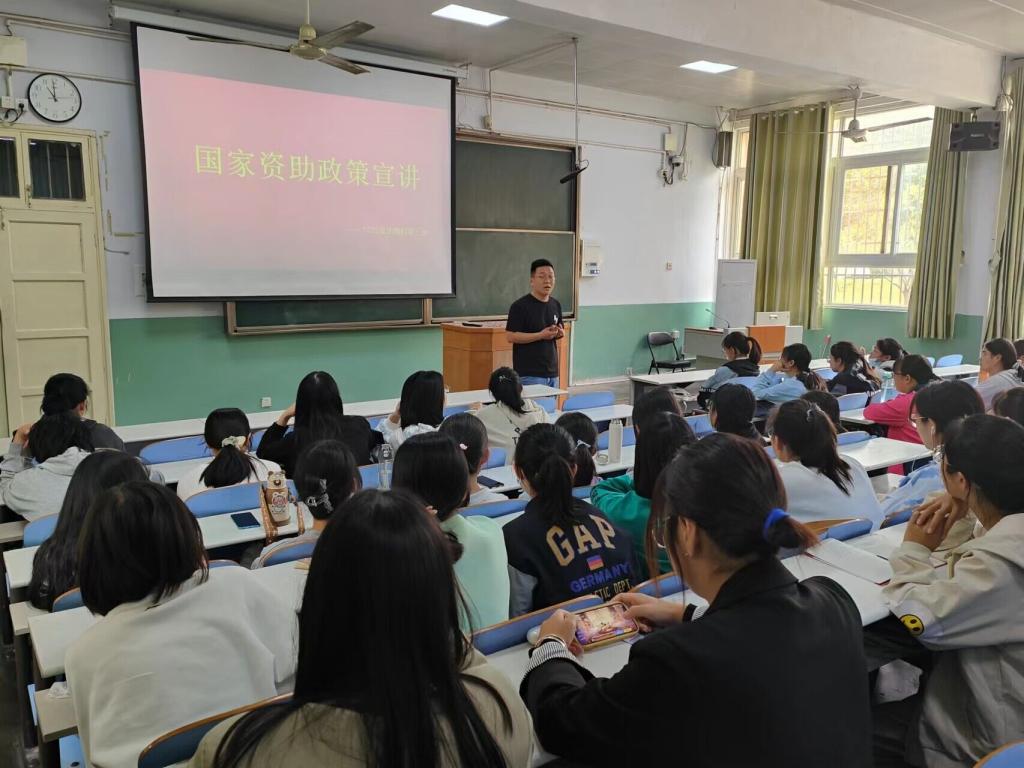 10月18日,威尼斯9499登录入口于教二梯1和教二梯2顺利召开2022-2023学年资助宣讲会。威尼斯9499登录入口资助专员曹鹏鹏、各班级学生代表共120余人一同参加了此次宣讲会。