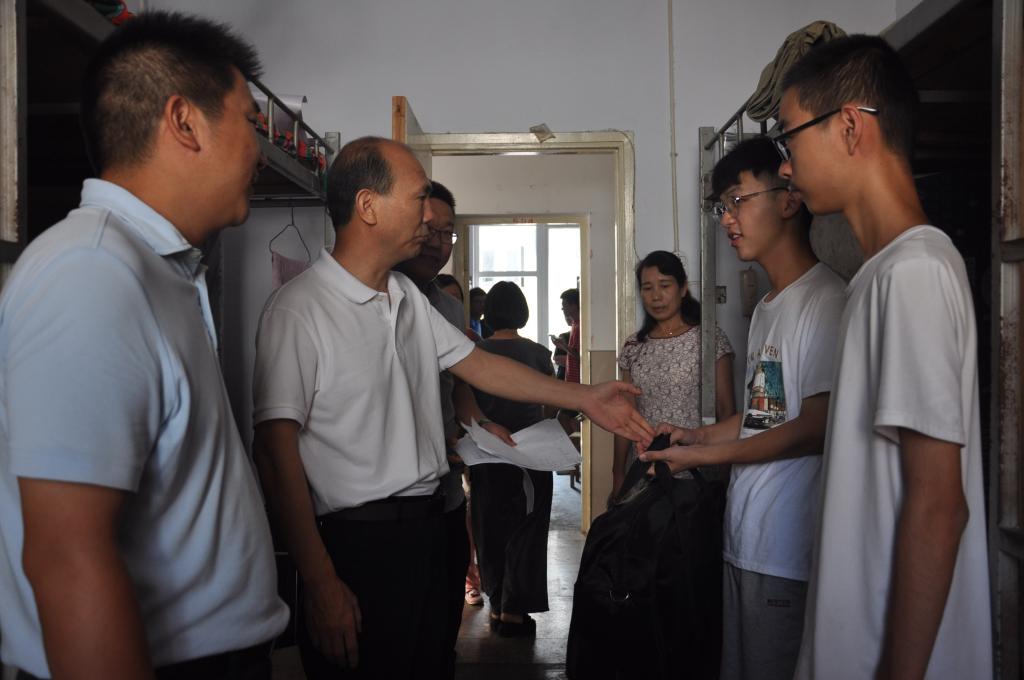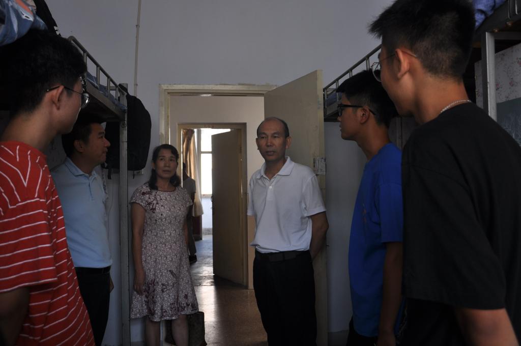 9月8日,威尼斯9499登录入口党委书记吴泽成,副院长王义民,党委副书记朱伟,团委老师杨辉、艾甜甜、姚玉坤、曹鹏鹏一同前往新生宿舍慰问,并发放新生助学大礼包。