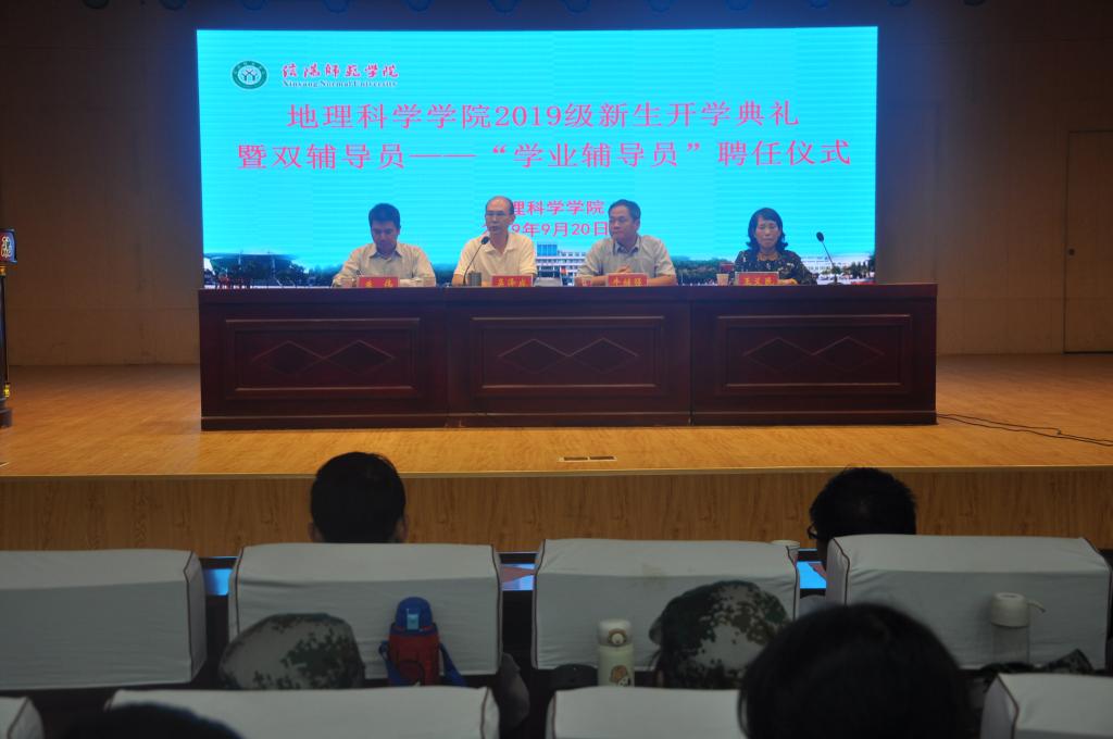 9月20日,威尼斯9499登录入口于理科楼报告厅隆重举行2019级新生开学典礼暨双辅导员聘任仪式。院党委书记吴泽成,副院长牛继强、王义民,党委副书记朱伟,班主任老师及2019级全体本科生和研究生参加本次典礼。典礼由朱伟主持。
