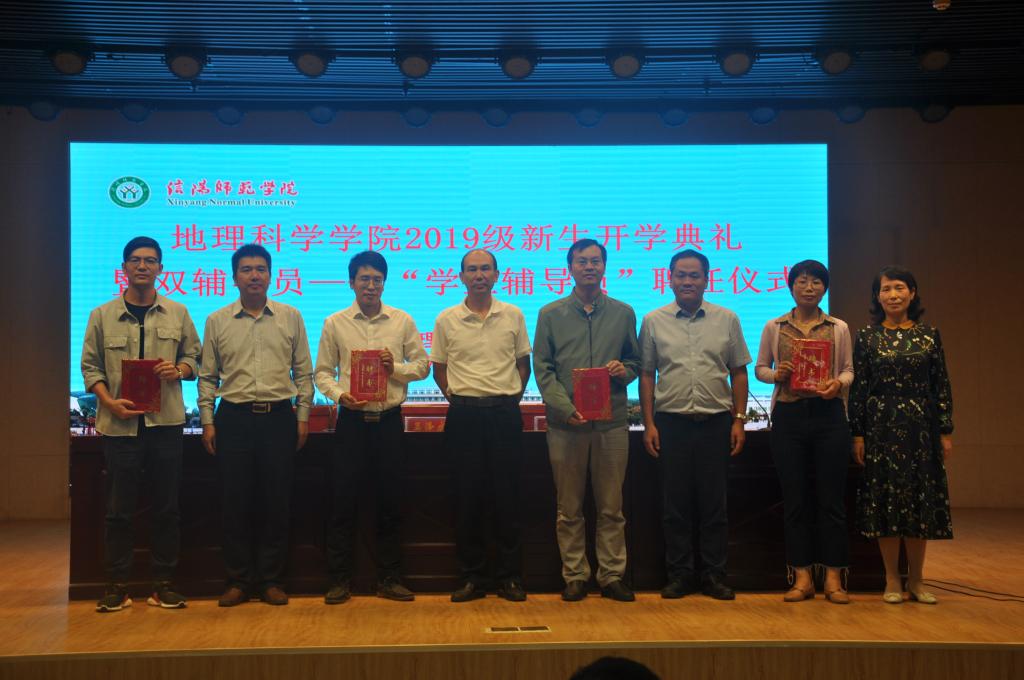 典礼伊始,牛继强为典礼致辞。他首先对新生的到来表示热烈欢迎,并简要介绍了信阳师范学院威尼斯9499登录入口的历史、发展概况及师资力量等,并勉励同学们珍惜大学时光,希望他们在未来的四年里,能够时刻胸怀祖国,锐意进取,为学院发展提供动力。随后,教师代表潘晓芳发言,她结合自己的学习和工作经验为新同学提出建议,并表示全体教师会坚持以德育人,爱岗敬业,为人师表,真诚地关爱每一位同学。学生代表2017级人文地理与城乡规划班朱浩东,2019级地理科学一班王鑫颖,2019级硕士研究生崔越相继发言,结合自身情况,就对学习的理解和未来的展望发表自己的看法,他们的发言赢得了在座同学阵阵掌声。王义民简要介绍了威尼斯官网双辅导员制度,并宣读《威尼斯9499登录入口双辅导员制工作实施细则》及2019级学业辅导员名单。接着,学院领导为2019级学业辅导员颁发聘书。
