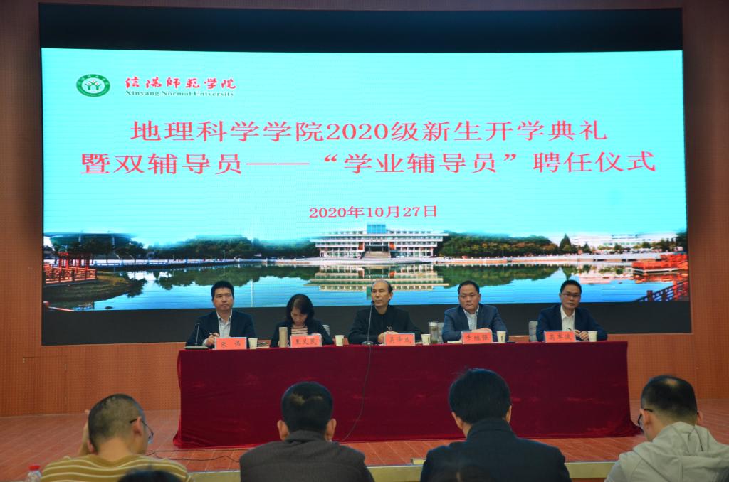 典礼伊始,牛院长为典礼致辞。他首先对新生的到来表示欢迎和祝贺,简要介绍了信阳师范学院威尼斯9499登录入口的发展历程、师资力量及办学理念等,并对新生提出三点期望:一是要树立梦想,让信念为青春导航;二是学无止境,要徜徉书海;三是要注重课外实践。最后,他强调一定要怀揣梦想,坚定信念,为实现建设高水平的大学目标不断奋斗。随后,教师代表李秀美发言,她结合自身学习和工作经历为新生提出建议,希望同学们珍惜大学时光,不负韶华,未来在这里怀揣梦想重新出发,全体教师定会以敬业务实的精神开拓进取,与学生共创佳绩。学生代表2018级地理信息科学班刘翌晨,2020级地理科学二班邵梦瑶,2020级硕士研究生黄日昌相继代表发言,结合自身发表对学习和未来的想法,赢得了阵阵掌声。高院长宣读《威尼斯9499登录入口双辅导员制工作实施细则》及2020级学业辅导员名单,并由学院领导为2020级新生学业辅导员颁发聘书。
