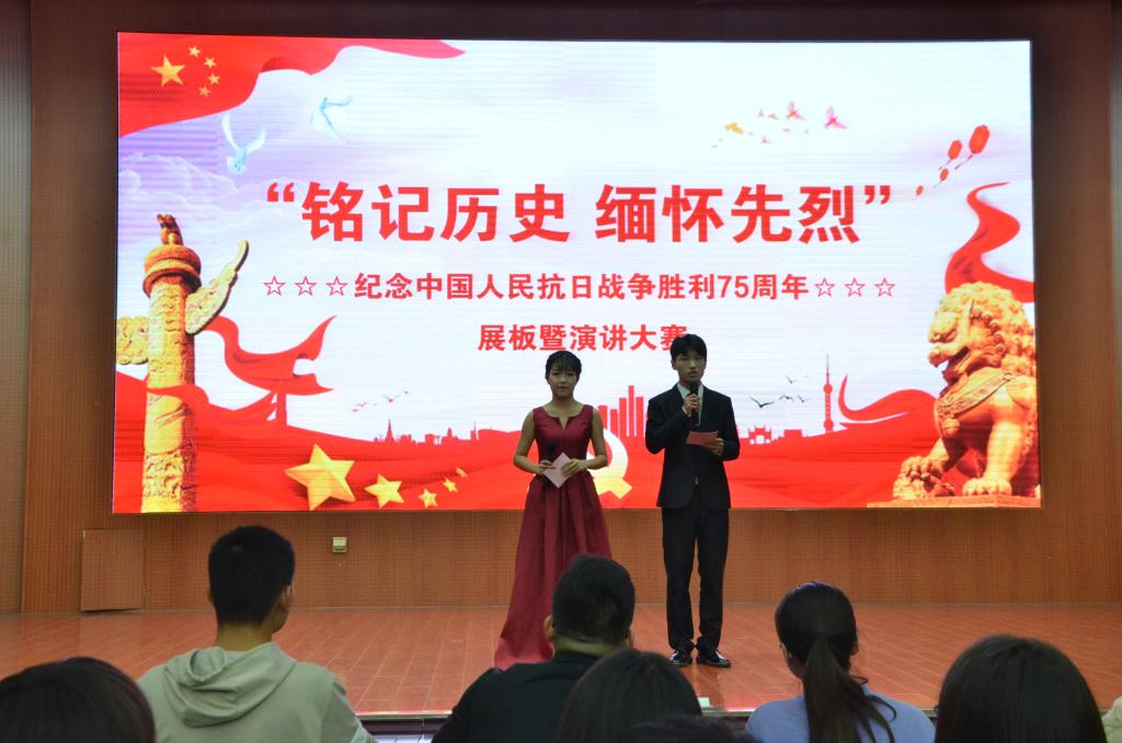 11月14日,由信阳师范学院学生会和威尼斯9499登录入口团委学生会联合主办的“铭记历史 缅怀先烈”暨抗日战争胜利75周年展板及演讲大赛于逸夫楼成功举办。威尼斯9499登录入口团委老师曹鹏鹏、各院系的学生会主席和负责人一同出席了此次活动并担任评委。