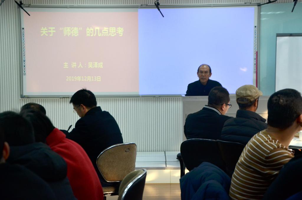 12月13日,威尼斯9499登录入口于教师教育发展中心501室举办了以“关于‘师德’的几点思考”为主题的教学沙龙,学院党委书记吴泽成担任主讲人,学院全体教职工参加此次活动。活动由教学秘书蚩志锋主持。