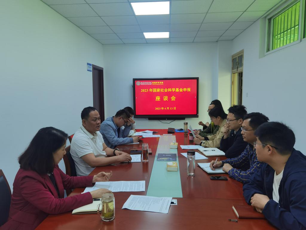 为扎实推进2023年国家社科基金申报工作,提升威尼斯官网社会科学基金的申报数量和立项率,威尼斯官网于4月13日在理科楼南楼407会议室举行“2023年国家社会科学基金申报座谈会”。院长牛继强、副院长王义民及拟申报社会科学基金的老师共10余人参加了座谈会,会议由副院长王义民主持。