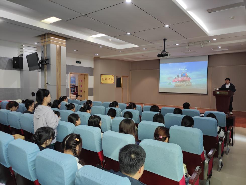 报告会上,余克服教授以“南海珊瑚礁对全球变化的响应与适应”为主题,在介绍珊瑚礁的分布及其资源环境功能的基础上,详细讲解了南海珊瑚礁的生态现状与退化过程,并从南北向迁徙、高温驯化、营养调节与供给等视角探讨了在全球变化背景下南海珊瑚礁的适应机制。余教授指出,当前珊瑚礁研究具有很高的学术价值,南海珊瑚礁研究不仅具有理论意义,而且能够有效支撑我国海洋强国战略。余教授还特别指出,青年教师和学生要把握机会投身于科学研究和实践中,弘扬学术精神,传播优秀成果,形成争创一流的强大合力,为地理学科建设作出积极贡献。报告结束后,针对学生提出的问题,余教授耐心、细致地进行解答,现场气氛热烈,师生互动频繁。牛继强院长对余教授带来的精彩报告表示诚挚的感谢。牛院长指出,余教授的报告高屋建瓴、深入浅出,不仅传递了科学知识,还蕴含了课程思政内容。希望与会师生学习余教授教授严谨治学、谦虚谨慎、仁爱与生的大师风范。此次报告开阔了师生的学术视野,与会师生均受益匪浅。
