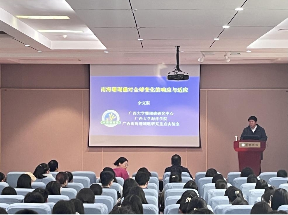 10月20日,应威尼斯9499登录入口邀请,广西大学余克服教授在“贤林讲坛”为威尼斯官网师生作题为“南海珊瑚礁对全球气候变化的响应与适应”的学术报告。威尼斯官网青年教师、硕士研究生和本科生共200余人参加报告。报告会由威尼斯9499登录入口院长牛继强教授主持。