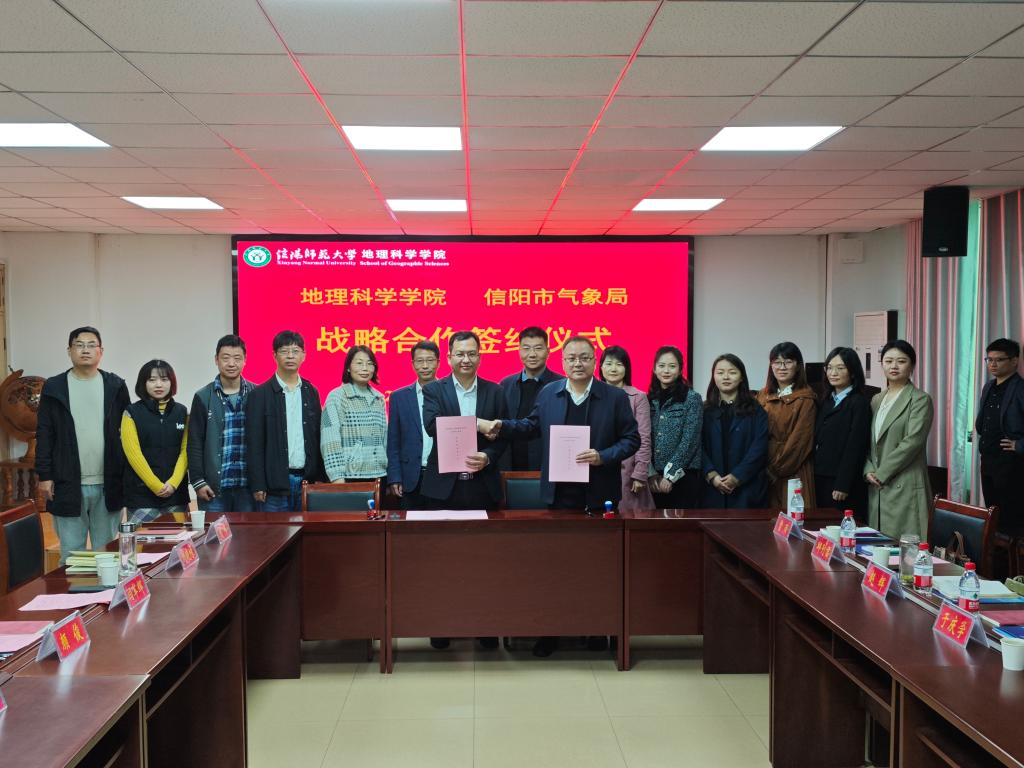 会上,副院长颜俊对于局长一行的到来表示热烈欢迎,简要介绍了学校的办学历史和发展现状,并围绕发展历史、学生规模、师资力量、学科发展、科学研究、社会服务、就业情况等方面,介绍了学院的基本情况。于庆学局长介绍了信阳市气象局的情况及此行交流调研的目的和任务,希望双方加强沟通交流,互学互鉴,推动双方各项工作高质量发展。座谈阶段,双方结合战略框架协议,围绕科技联合攻关、平台共建共享、科研团队共建、人才培养与学生实习实践基地建设、成果转化等方面进行了深入交流并达成共识。随后,威尼斯官网与信阳市气象局正式签署战略合作协议。根据协议,双方将秉持“开放合作、优势互补、协同创新、共同发展”的原则,充分利用高等院校的技术、人力等资源以及先进科研成果,发挥气象局观测设备、数据和人力资源优势,努力实现优势互补、合作共赢,共同提升双方的科研创新能力,推进双方师资共享、联合培训、人才培养、科技研发和成果转化,相互促进共同发展。